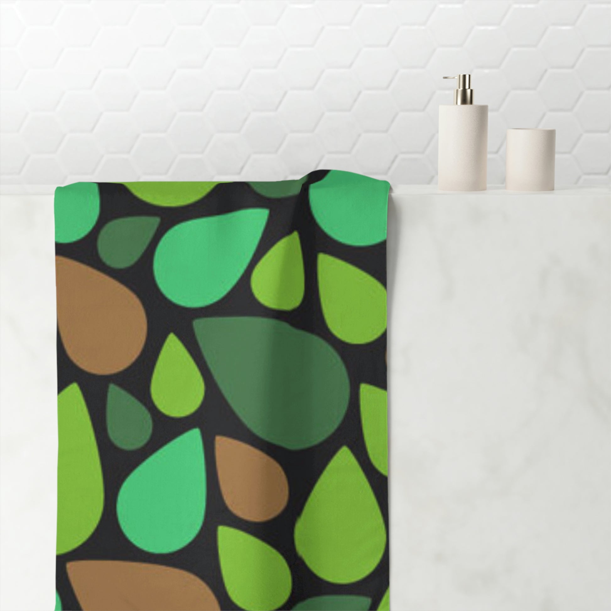 Toalla de baño con lágrimas verdes y marrones. Diseño personalizado. Un toque único y extravagante. Ideal para cualquier baño de su hogar o negocio. Suave al tacto. Agrega un toque de color. Seque con una toalla después de un baño de burbujas o una ducha. ¡Impresionante!