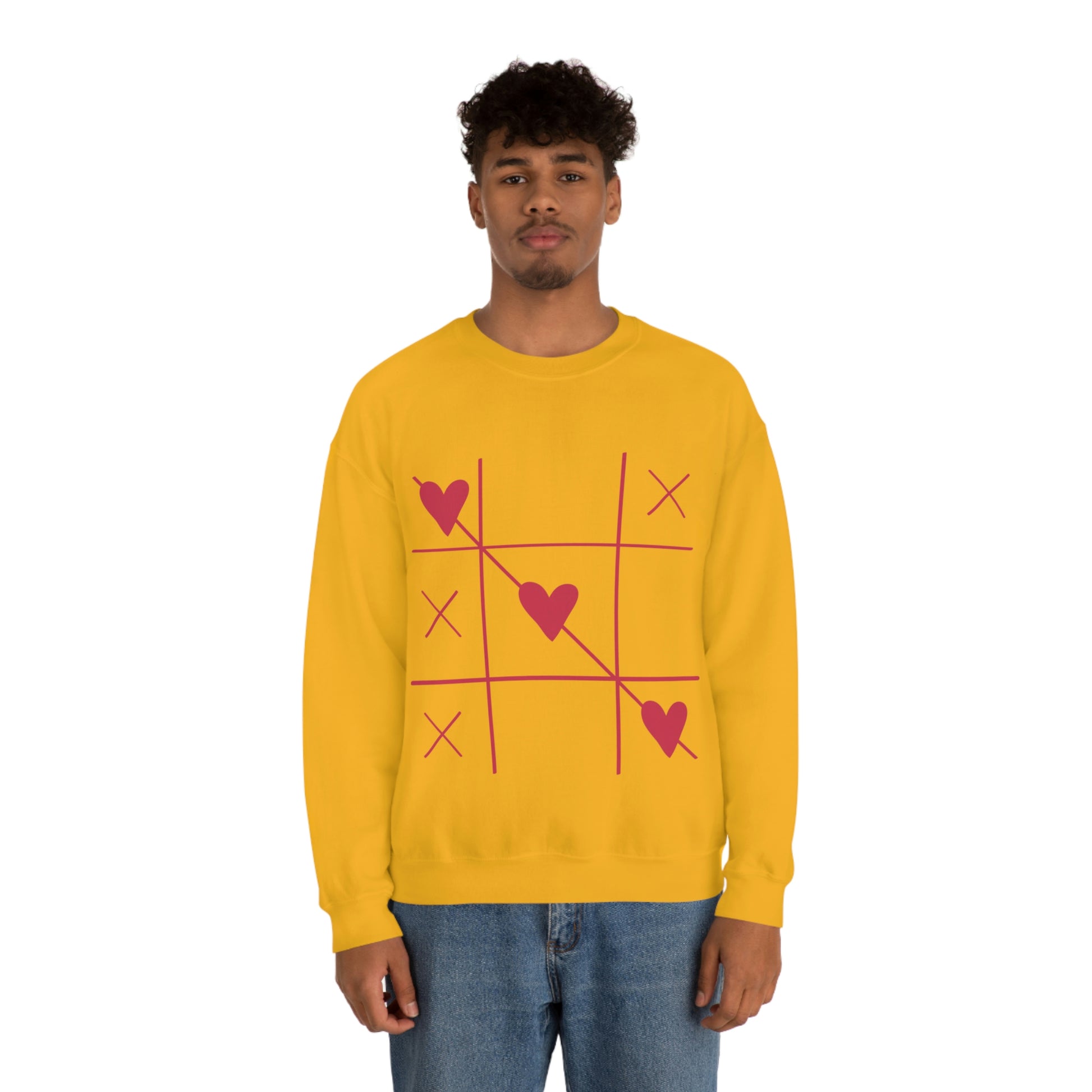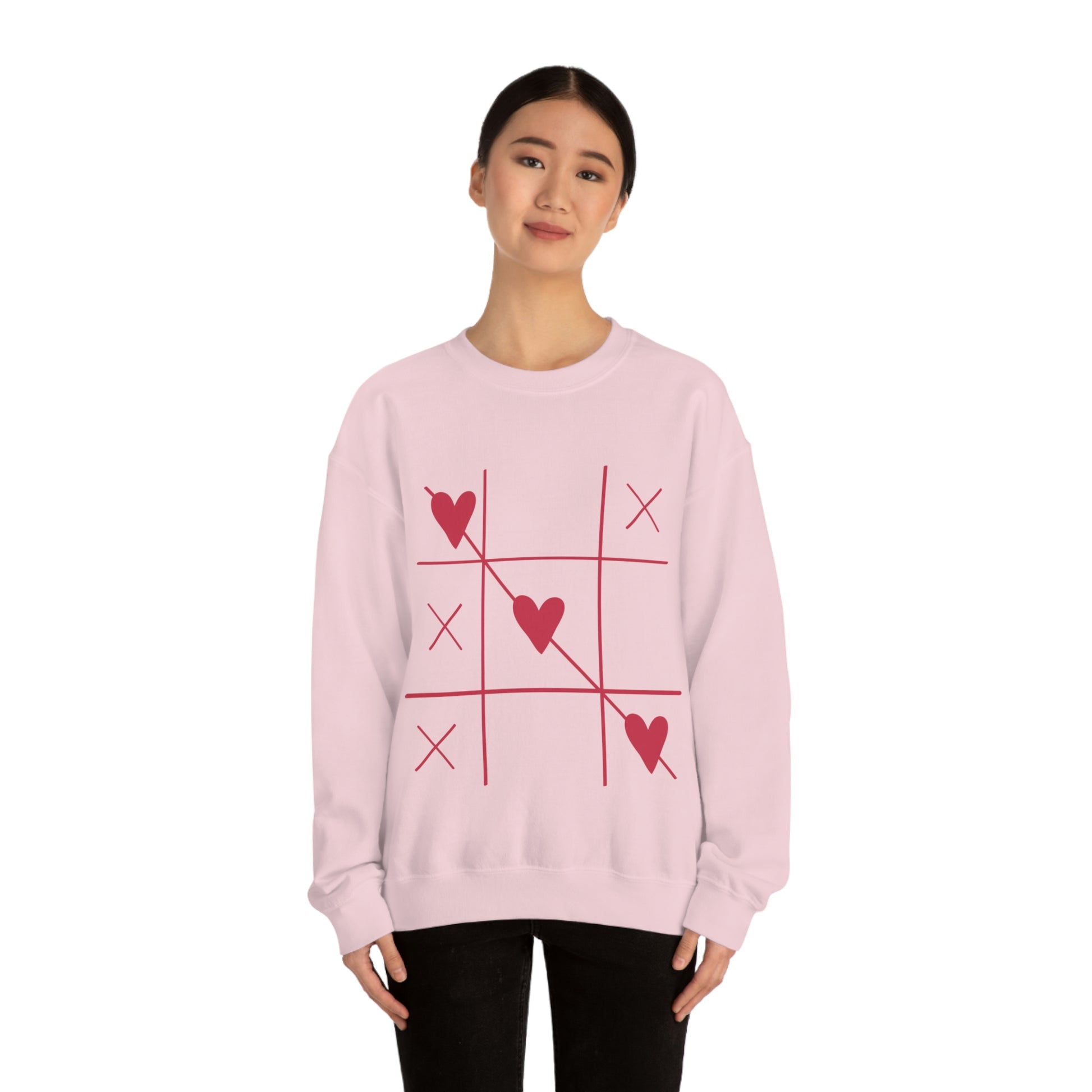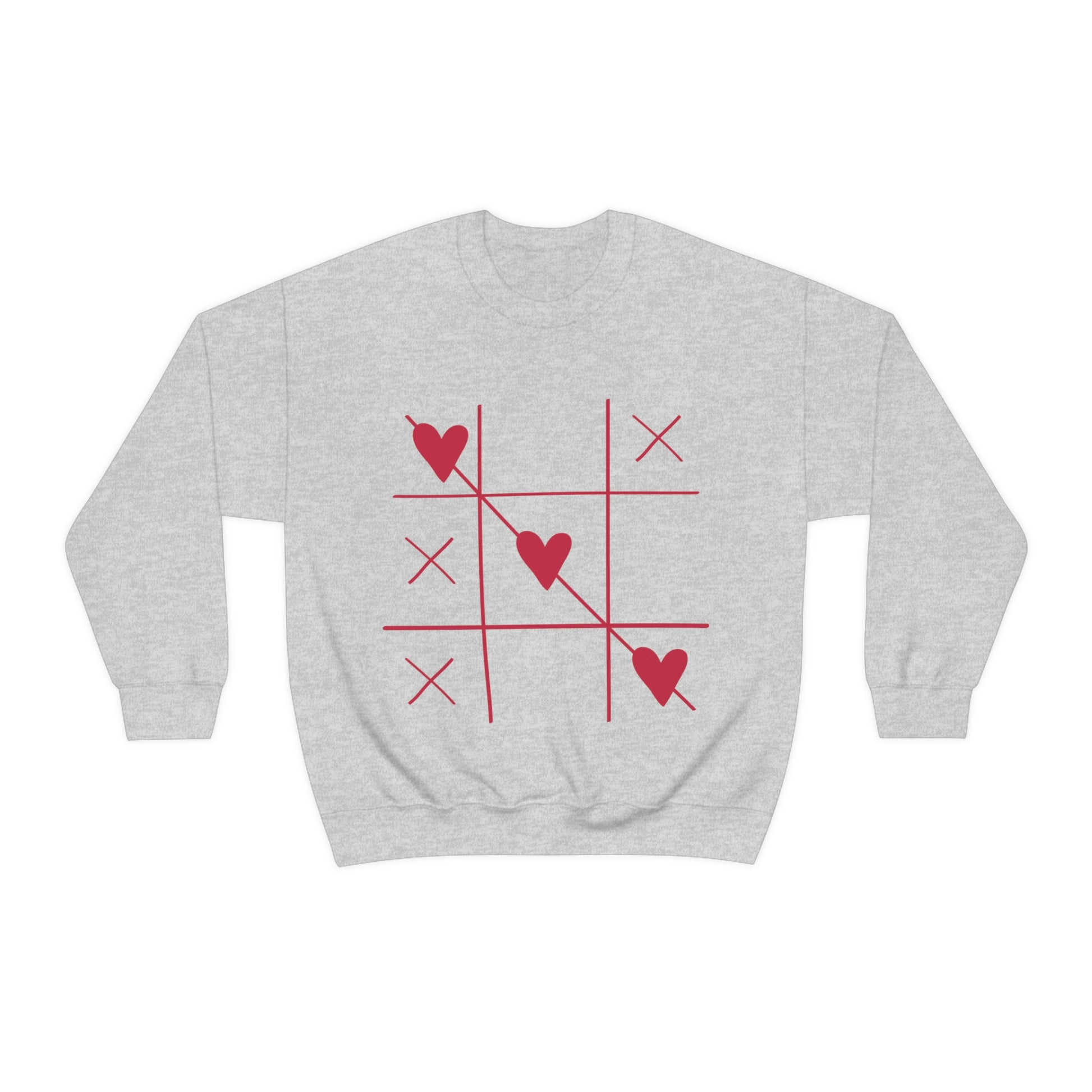 Tic Tac Toe avec des cœurs. Sweat-shirt ras du cou. Illustration personnalisée. Flare fantaisiste unique. Couleurs vives. Idéal pour les hommes, les femmes et les enfants. Doux contre votre peau. Confortable à porter tous les jours de la semaine. Vous garde confortable et au chaud. Un look spectaculaire ! Un cadeau d'anniversaire tellement merveilleux !
