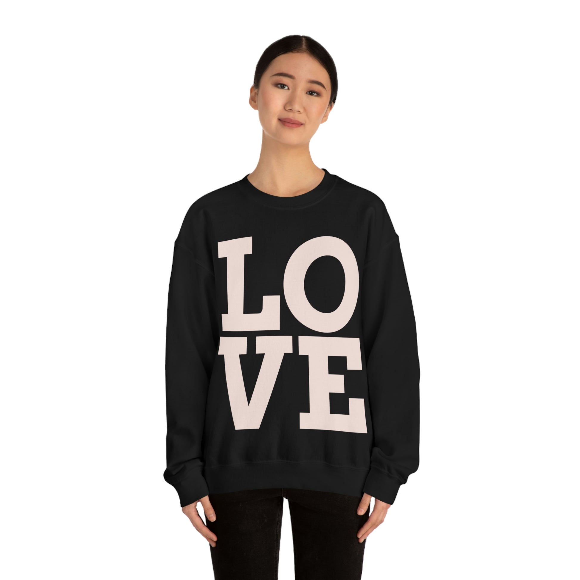 LOVE. Sweat-shirt ras du cou. Illustration personnalisée. Flare fantaisiste unique. Couleurs vives. Idéal pour hommes, femmes et enfants. Doux contre votre peau. Confortable à porter tous les jours de la semaine. Vous garde confortable et au chaud. Un look spectaculaire !