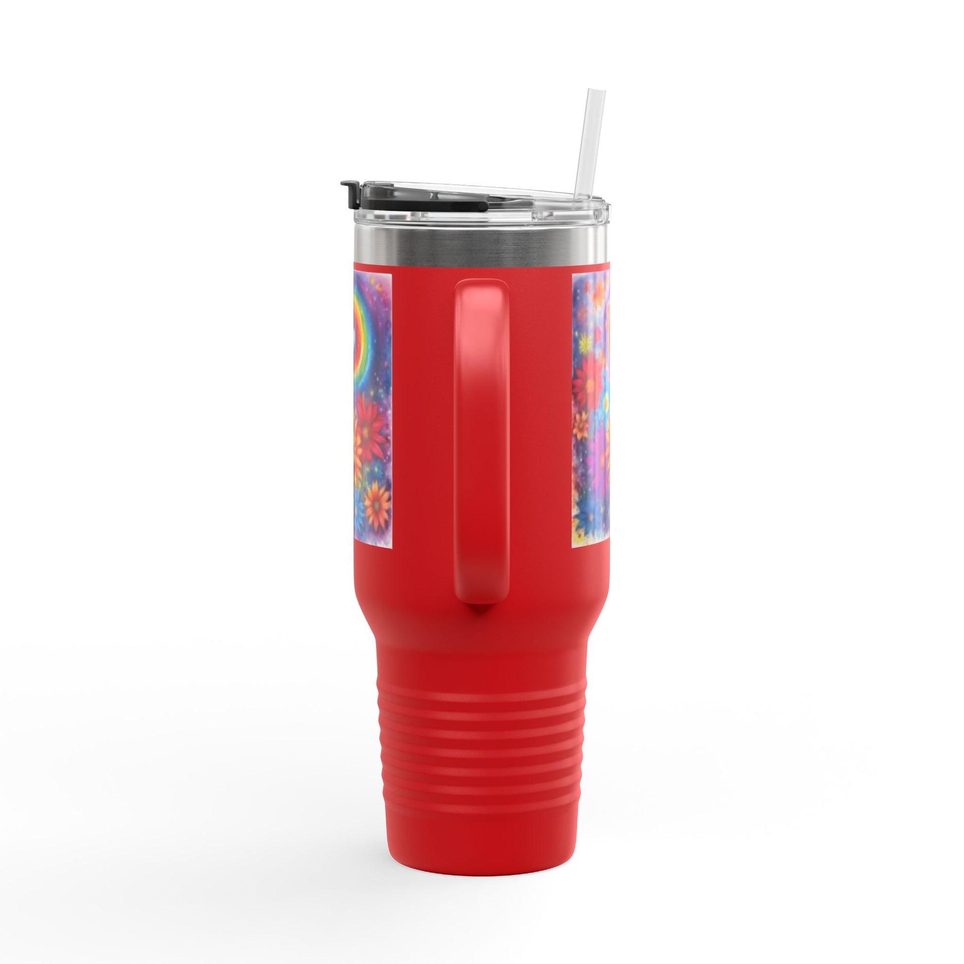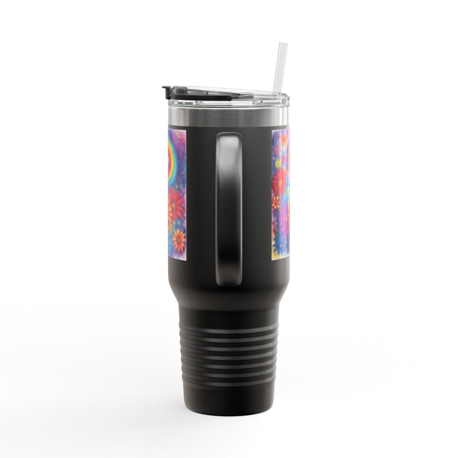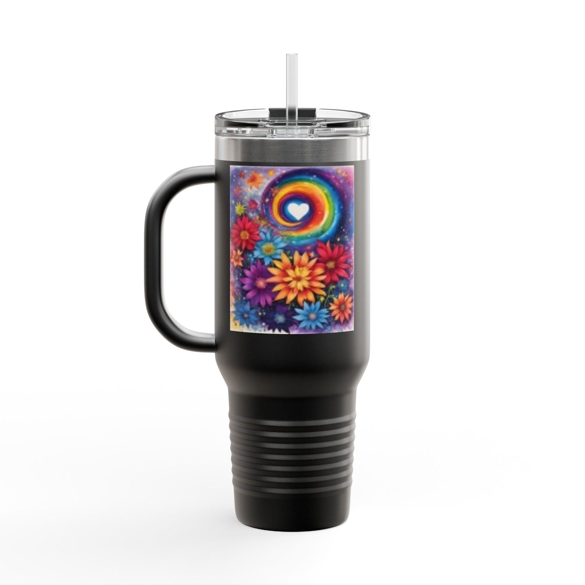 Colorful Floral Rainbow, Flowers & Heart. Vivid Colors. Custom Artwork. Great for Traveling. Fill with water, milk, tea, juice & soda.
