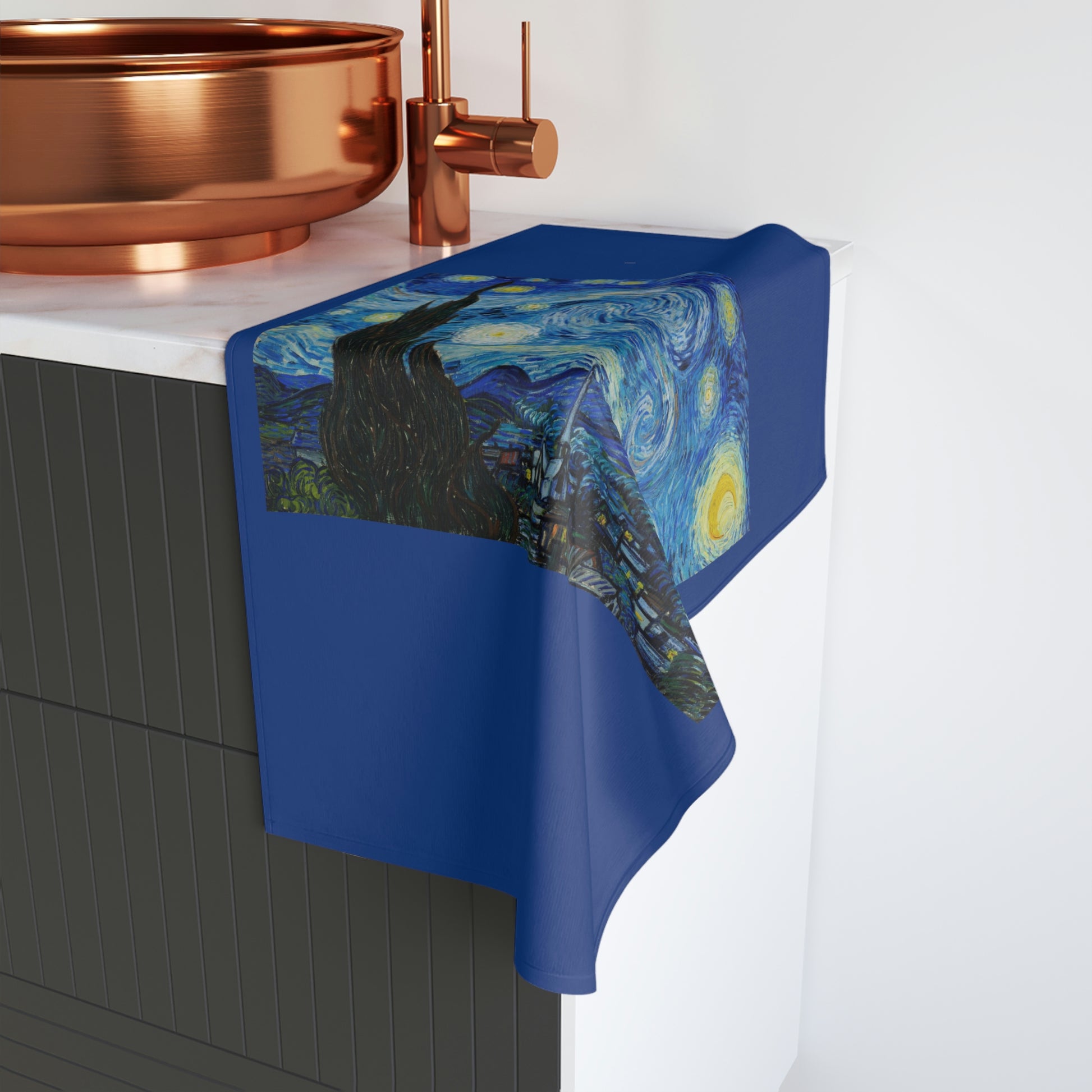 The Starry Night (1889) Vincent van Gogh. Hand Towel. Custom Artwork. Unique Whimsical Flare. Vivid Colors. Great to have in every bathroom of your house and business. Adding a Splash of Color. Soft against your skin. I love this hand towel!